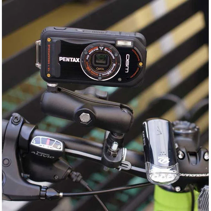 The RAM-B-149Z-237U consists of a zinc coated u-bolt base, double socket arm and 1" diameter rubber ball, connected to a 1/4"-20 camera thread. Designed into the mount is a 1" diameter patented rubber ball and socket system with adjustment points at both ends of the socket arm; this with a twist of the arm knob, allows for infinite articulation and optimum viewing angles. The male thread matches most standard camera and camcorder female threads found on the bottom of the camera. Included in this package is hardware that will accommodate rails from 0.50" to 1.25" in diameter. Also included are black cover caps to be placed over the exposed ends of the u-bolt and a composite adapter that can narrow the rail to a minimum width of 0.5".